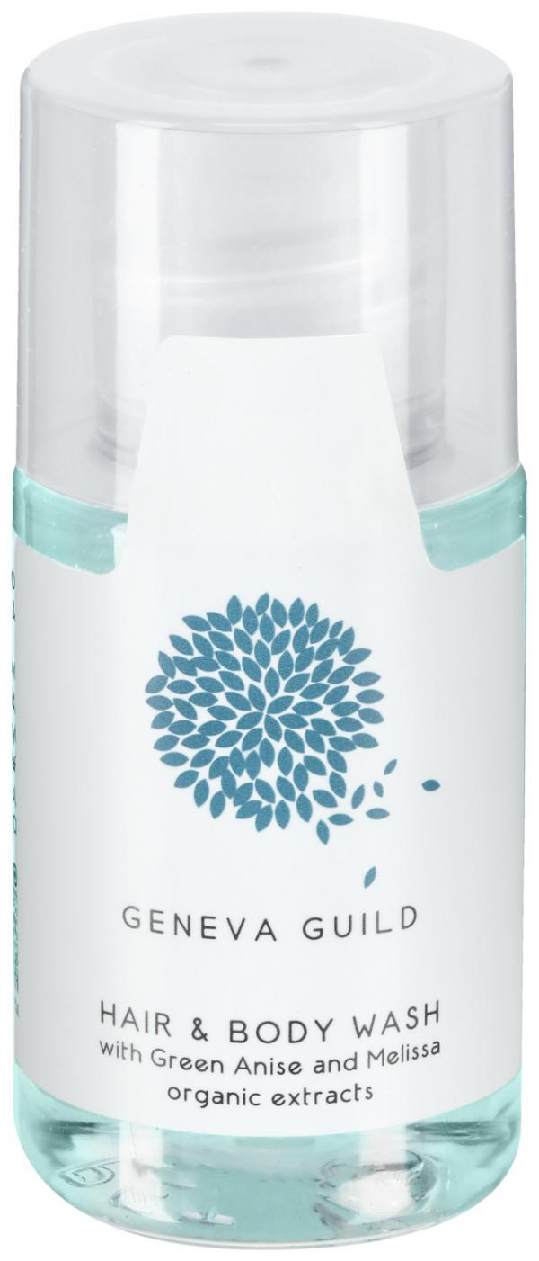 Mild combined hair shampoo and shower gel Geneva Guild. A two-in-one care product in a class of its own. The gently cleansing shampoo and shower gel is suitable for all hair and skin types. The exquisite fragrance nuances provide a fresh and hygienic feeling. Enriched with watercress extract. Dermatologically tested and pH neutral! Recyclable packaging. Content: 20 ml vial with screw cap.