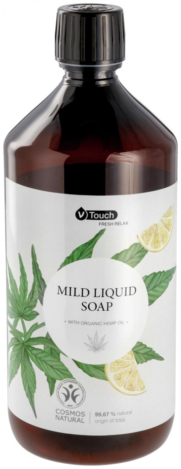 Tečni sapun za blago i temeljno čišćenje V-Touch Fresh Relak. Sertifikovana prirodna kozmetika sa garantovanim originalnim uljem konoplje i nagoveštajem limunovog ulja za svež miris. Blagi surfaktanti koji ne isušuju kožu previše i stvaraju prijatnu penu. Pogodno za sve tipove kože. Dermatološki testiran i pH neutralan. Boca za punjenje je napravljena od 100% recikliranog materijala. Sadržaj: 1000 ml sa poklopcem na navoj.
