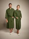 Visokokvalitetni frotir ogrtač u premium segmentu, voluminozni frotir s osjećajem mekog pamuka, vlakna od rajona sa svojstvom svilene boje stvaraju jedinstven izgled tkanine i izvrstan izgled. Mantil (unisex) ima 2 zakrpana džepa i šal kragnu. Isporuka uključuje kaiš za bade mantil. Moguća personalizacija.