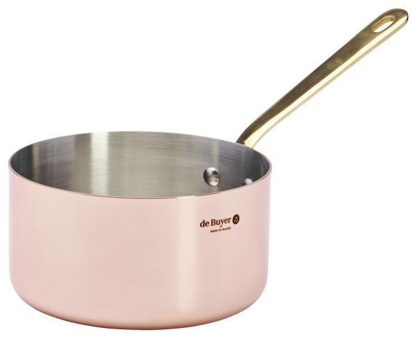 Zakovane, zlatne mesingane ručke. Visokokvalitetni sjaj kao ogledalo. Prestižna, elegantna linija, idealna za trpezariju, idealna za serviranje i flambiranje. Nega bakra pastom za poliranje. Nega nerđajućeg čelika: pranje ručno. Za sve vrste ploča za kuvanje OSIM indukcije.