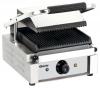Vsestrani kontaktni roštilj za brzu pripremu grickalica. Zagrijavanje somuna jednako je moguće kao i pečenje mesa na roštilju. Ploče za roštilj od livenog gvožđa, užlebljene na vrhu, glatke dole. Kućište od nerđajućeg čelika hrom-nikl, nerđajući čelik. Termostat podesiv od 50 °C do 300 °C. Sa svjetlom za zagrijavanje i svjetlom indikatora uključeno/isključeno. Uključuje posudu za masnoću od krom-nikl nehrđajućeg čelika, otpornu na rđu i perilicu u perilici posuđa. Incl. četka za čišćenje. 2 godine garancije. Priključeno opterećenje: 2,2 kW/230 V; Gornja gril ploča ŠxD: 33,5x 22 cm; Donja roštilj ploča ŠxD: 33,5x23 cm; Težina: 19 kg.