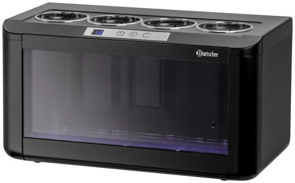 Vinski hladnjak za uštedu prostora sa zasebno zamenljivim LED osvetljenjem u elegantnom dizajnu napravljenom od plastike. Boca se otvara 9 cm. Termoelektrično hlađenje podesivo od 5°C do 18°C.