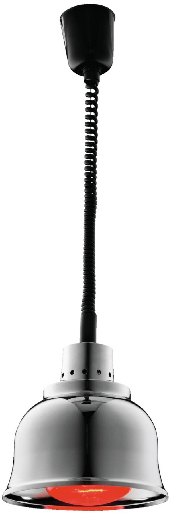 Materijal: bakar lakiran ili sjajni hromiran. Spiralni kabl podesiv od 75 do 185 cm. 250 W infracrveni radijator, uključi/isključi prekidač na kućištu. Jednofazna konekcija može biti izvršena samo od strane specijaliste. Toplotne lampe treba suspendovati na visini od cca 50 cm iznad hrane da bi se grejalo, tako da se može održavati toplotni krug cca 45-50 cm. 2 godine garancije. Isporuka bez utikača. Instalacija samo od strane specijaliste!