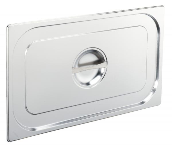 Nerđajući čelik. Odgovarajući poklopac za GN kontejnere. Može se prati u mašini za pranje sudova. Bez izreza za kašiku.