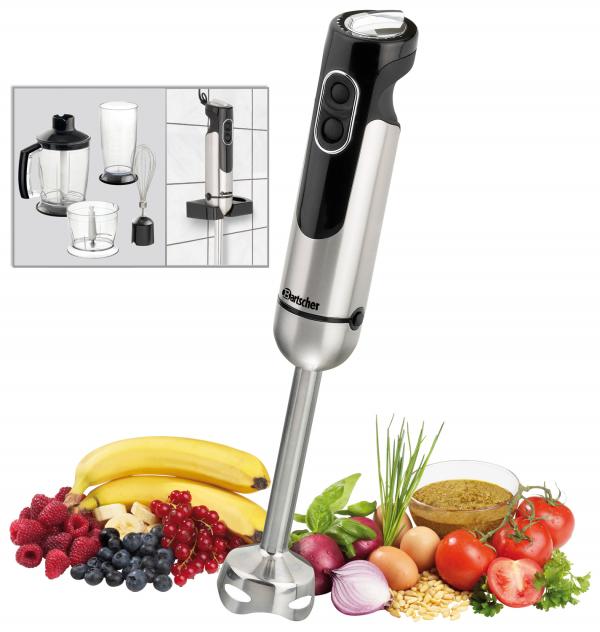 5 nivoa brzine Brzina blendera max. 17000 obrtaja u minuti lako i brzo čišćenje pribora 2 godine puna garancija Komplet dodataka: 1x mućkalica, 1x posuda (800 ml), 2x specijalni kontejner sa srpastim sečivom (500 ml + 1250 ml) sa 1x odgovarajućim poklopcem, 2x protuklizni podmetačima, 1x zidnim nosačem. Bilo da se radi o mešanju, čišćenju, seckanju, brbljanju ili mešanju: ručni blender set H200 pravi je svestrani talenat za vašu kuhinju. Pogodan je za širok spektar funkcija zahvaljujući praktičnom i jednostavnom repozicioniranju. Njegov ergonomski dizajn od nehrđajućeg čelika, kao i 5 nivoa brzine, čine ga optimalnim kuhinjskim pomagačem.