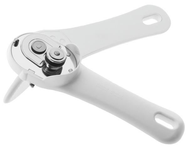 Trajni sigurnosni otvarač za konzerve izrađen od plastike i nehrđajućeg čelika.Nije pogodno za mašine za pranje sudova.