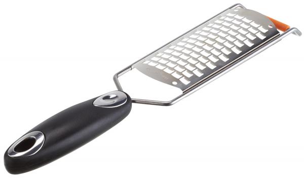 Ekstra gruba renda od nehrđajućeg čelika. Plastična drška bez klizanja sa ojačanom petljom za vješanje. Kvadratne rupe dimenzija cca 6 mm.