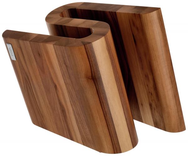 Moderan magnetski blok noževa u obliku slova S izrađen od nauljenog drva oraha s privlačnim uzorkom zrna. Magneti u cijelom bloku noževa, tako da se oštrice noževa mogu sigurno držati na mjestu sa svih strana. Meke nožice na dnu štite kuhinjsku površinu. Za prirodno drvo preporučuje se nježno ručno čišćenje.