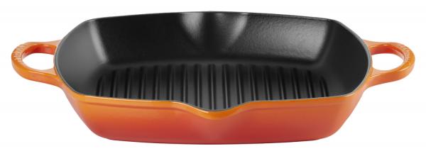 Kvadratna roštilj tiganja Signature bi Le Creuset sada je dostupna i sa dve ručke. Veličine je 30 cm i nešto je veći i ima visok obod sa dva izliva za izlivanje. Žlebovi stvaraju autentičan i sjajan uzorak za pečenje na roštilju. Pogodno za mašinu za pranje sudova. Veličina: 30x30 cm.