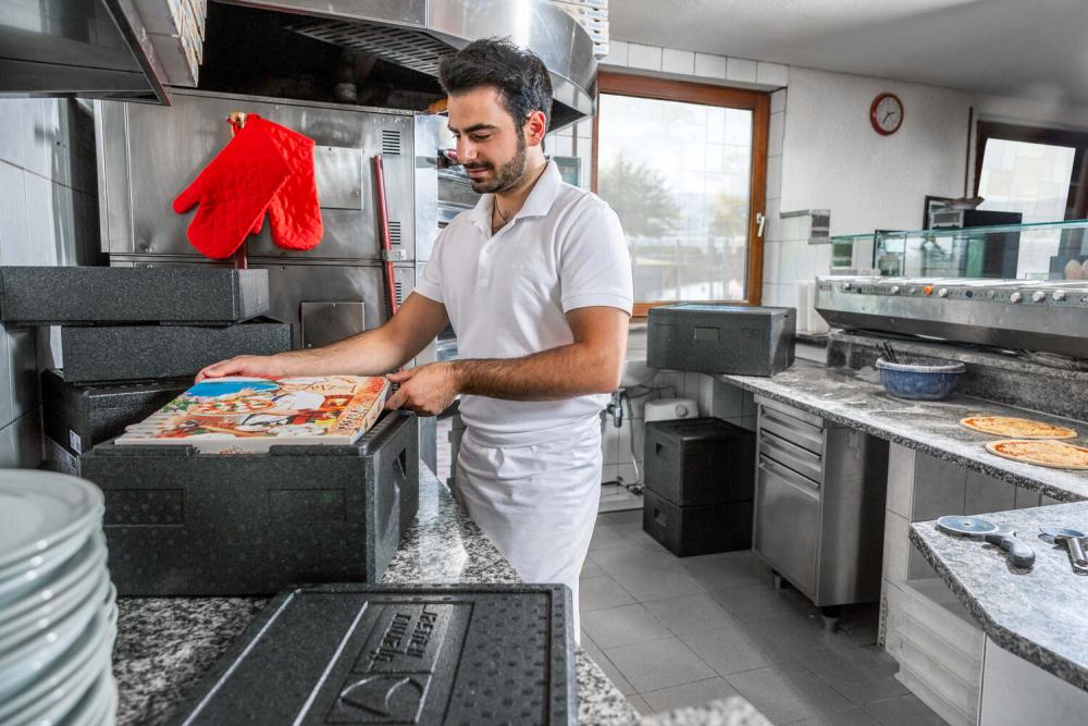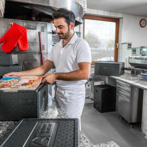 THERMOBOX PIZZA ECO LINE - THE BASIC VERSION OF THE PIZZA BOX The Eco Line series of thermohauser insulated boxes stands for the basic version of insulated boxes with the most important features that characterise a solid transport and insulated box. This also applies to the Pizza Eco Line insulated box. What characterises a good pizza when it arrives at the table? The dough should be fluffy yet crispy, the topping fresh, not soggy. And above all, it should be hot, just like fresh from the oven. To ensure that a successful pizza loses none of its freshness and quality during delivery to the customer, the Pizza Eco Line thermobox is a good and price-conscious choice. The Pizza Eco Line thermobox is made of black, foamed plastic (EPP) and comes with a lid. The material is extremely light, but at the same time highly insulating and very robust. The boxes can be used safely in the food sector - especially for transporting temperature-sensitive food. Cleaning is quick and easy with hot running water or in the dishwasher. With its square basic shape, a pizza box is designed to match the dimensions of classic pizza boxes. As it has an excellent insulating effect due to its material, the pizza reaches its destination fresh and hot with the help of this insulated box. The pizza remains particularly crispy thanks to even and good ventilation. The special feature of the Pizza Eco Line thermobox is the striped design on the outside, a feature that makes this box series instantly recognisable. The lid is easily opened with a simple corner handle at the corresponding recesses. Several boxes can be stored stacked. The Pizza Eco Line thermobox is not only ideal for transporting fresh, hot pizzas. It is also a very good choice for transporting cakes or pies. And what works for hot food also works just as well for food and fresh and chilled goods. Their high insulating effect and minimal temperature loss over hours make the Pizza Eco Line thermoboxes ideal for use in a temperature range of around -40°C to +120°C. + External dimensions: 41.0 x 41.0 x 23.5 cm + Internal dimensions: 35.0 x 35.0 x 17.5 cm