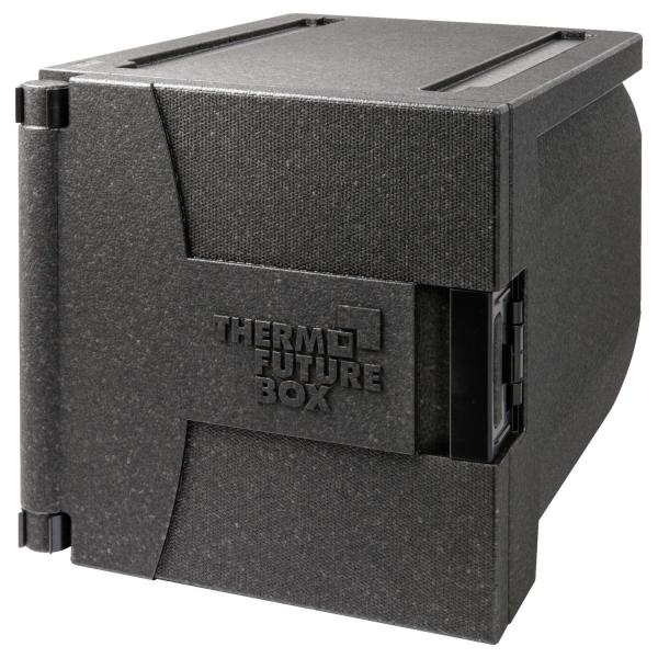 Transportna i izolaciona kutija zapremine 69 litara za prednje umetanje GN kontejnera (1/1, 1/2, 1/3) i hladnog pakovanja ili toplog pakovanja. Udaljenost od ukupno 9 umetanja žljebova je 38 mm svaka.