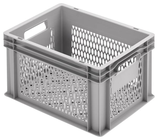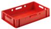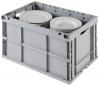 Robusni polipropilenski kontejner za slaganje sa 2 udubljene ručke. Stranice i baza su perforirani. Idealan za siguran transport i skladištenje posuđa ili hrane. Slaganje sa maks. opterećenje na slaganje od 70 kg, max. nosivost kontejnera od 9 kg. Naručite odgovarajući poklopac sa šarkama sa bravom za istovremeno slaganje kontejnera.