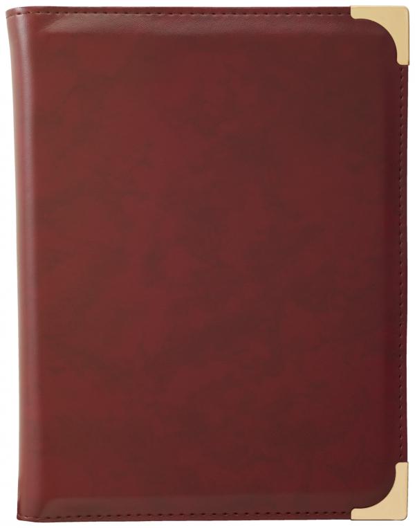Atraktivni meniji od imitacije kože u neutralnom dizajnu. Fascikle su pažljivo obrađene i apsolutno lako se čiste. Svi modeli sa metalnim uglovima zlatne boje, 4 skrivena zavrtnja za knjige za pričvršćivanje korica veličine DIN A4 ili DIN A5 kao i duboko utisnutim zlatnim štampom. . Providne korice se moraju posebno naručiti.