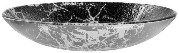 Glass bowl in marbled look. Dishwasher safe.