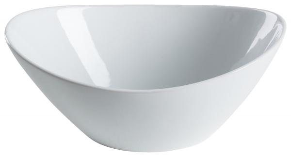 Moderna zdjela napravljena od bijelog porcelana. Blago oblikovan oblik. Može se prati u mašini za suđe i može se koristiti u mikrotalasnoj pećnici.
