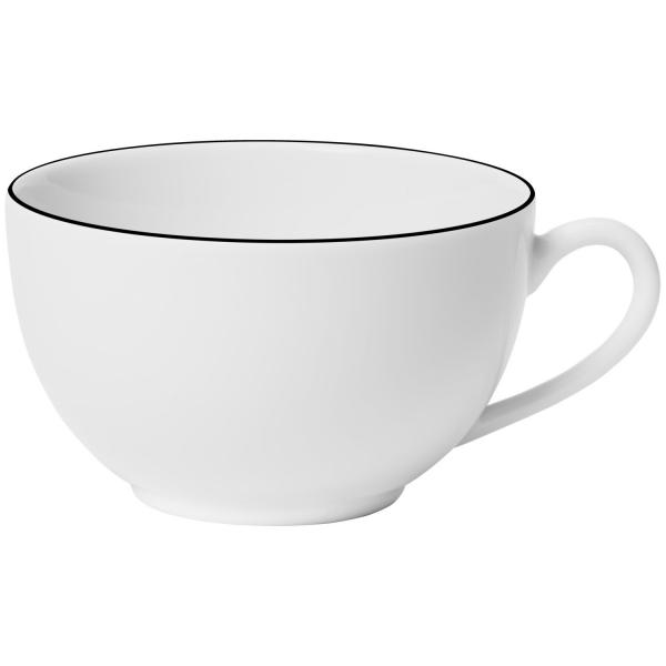 Atraktivna serija od bijelog porcelana sa ukrasnim crnim rubom.Materijal: porcelan. Može se prati u mašini za suđe i može se koristiti u mikrotalasnoj pećnici.