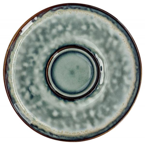 Tanjirić za espresso od kamena u boji sa modernim dizajnom reaktivne glazure.Svaki komad je unikat. Pogodno za mašinu za pranje sudova i za mikrotalasnu.