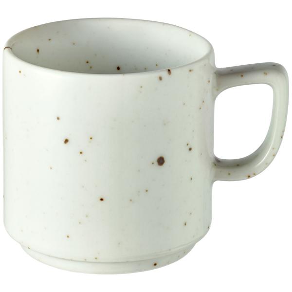 Šarena porcelanska šolja za espreso sa nepravilnim mrljama. Može se prati u mašini za suđe i može se koristiti u mikrotalasnoj pećnici.