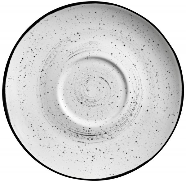 Šolja za kafu iz porcelanske serije Fungio, napravljene og hotelskog porcelana visokog kvaliteta. Bijela sa crnim obodom i malim, nepravilnim tačkama. Može se prati u mašini za suđe i može se koristiti u mikrotalasnoj pećnici.