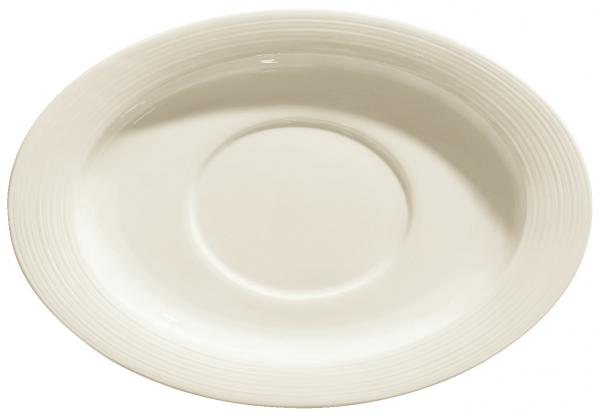 Tanjir za posudu za sos od koštanog porculana krem boje sa reljefom. Moderan dizajn. Visoka otpornost. Briljantna glazura. Može se prati u mašini za suđe i može se koristiti u mikrotalasnoj pećnici.
