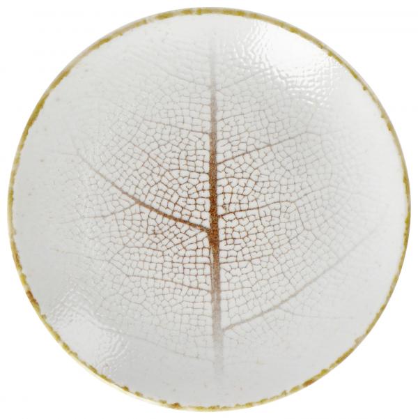 Colored porcelain plates decorated with digital print of delicate leaf pattern. Versatile and ideal for combining with other pieces. Without rim. Dishwasher safe and microwaveable.