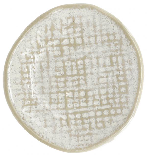 Colored stoneware plate with a special metallic glaze and textured finish. Each piece is unique. Dishwasher safe and microwaveable.