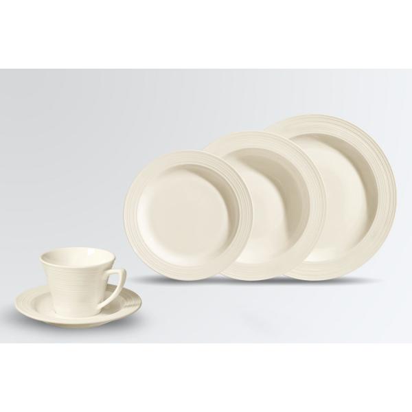 Posuđe kremasto tople boje sa briljantnom glazurom i visokom otpornošću. Može se prati u mašini za suđe i može se koristiti u mikrotalasnoj pećnici.