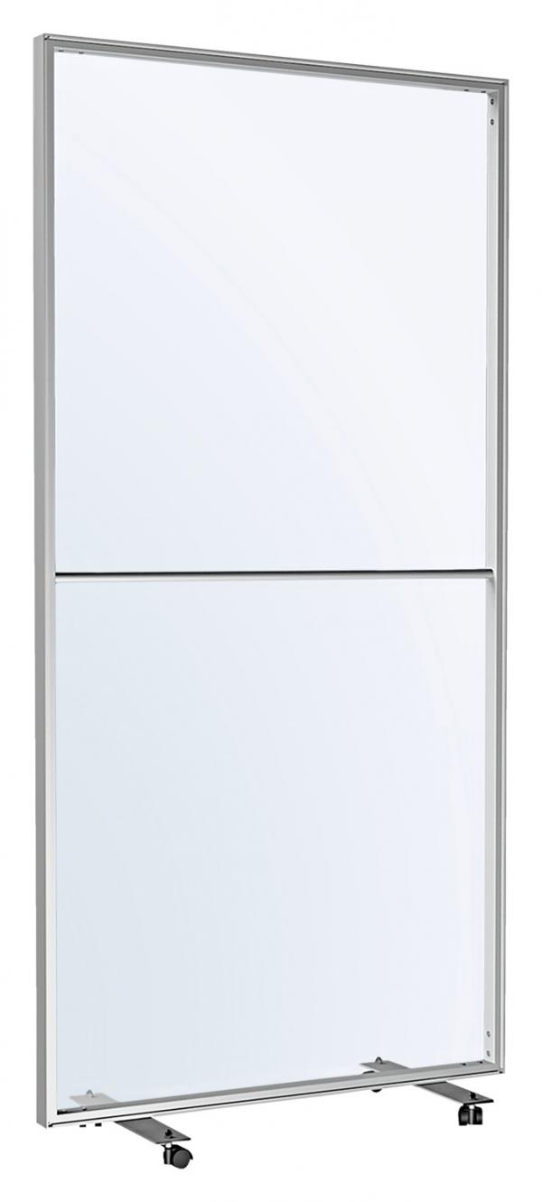 Ova kontaktna zaštita je optimalna za održavanje preporučene sigurnosne udaljenosti, npr. u restoranima, kancelarijama, teretanama, frizerima i mnogim drugim objektima koji se tiču sprečavanja infekcije kapljicama. Sastoji se od srebrnog anodizovanog aluminijumskog okvira i jednostavnog, transparentnog PVC filma (B1 zaštita od požara), koji se lako može pritisnuti u određene brazde aluminijumskih profila preko kedera. Ovo je već unapred sastavljeno sa ovim proizvodom. Dimenzije kontaktne zaštite su 95x201 cm. Zahvaljujući maloj težini i integrisanim kasterima sa zaključavanjem kočnice, kontaktni štitnik se može lako repozicionirati po potrebi. Ako vam više nije potrebna kontaktna zaštita kao takva, transparentni PVC film se lako može zameniti štampanim tekstilnim banerom sa motivom. Ovo se može posebno zahtevati od nas.