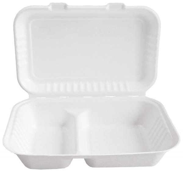 Sa pričvršćenim poklopcem i praktičnom particijom. Napravljen od visokokvalitetnog, ekološki prihvatljivog bagasa. Kutija je oblikovana, lagana, a opet stabilna. Vodootporna, otporna na masti i ulje, otporna na toplotu i hladnoću. Pogodno za mikrotalasnu do 90 °C.