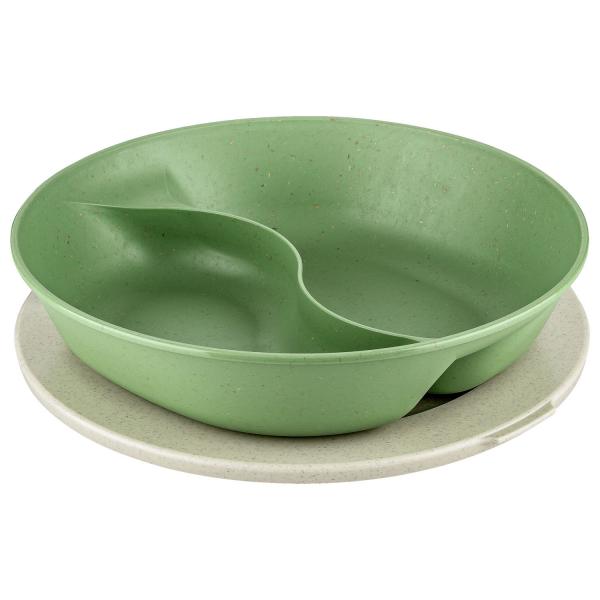 Podieljena posuda je napravljena od čisto biokružne plastike i drvenih vlakana. Plastika se proizvodi isključivo od korišćenog suncokretovog i repičinog ulja iz industrije i gastronomije. Drvna vlakna se dobijaju od otpada od proizvodnje papira i stabala koja se poseku u okviru gazdovanja šumama. Njegov praktičan poklopac čini ga idealnim za poneti i za škole ili menze. Pruža pouzdanu temperaturnu otpornost između -10°C i +100°C. Bez BPA, bez melamina, pogodno za mikrotalasnu, nepropusno i pogodno za mašinu za pranje suđa.