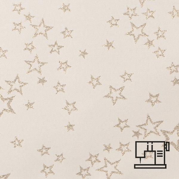 Satenska tkanina sa zlatnim zvijezdama za božićnu sezonu, sa zaštitom od mrlja, 100% poliester, 40° pranje.