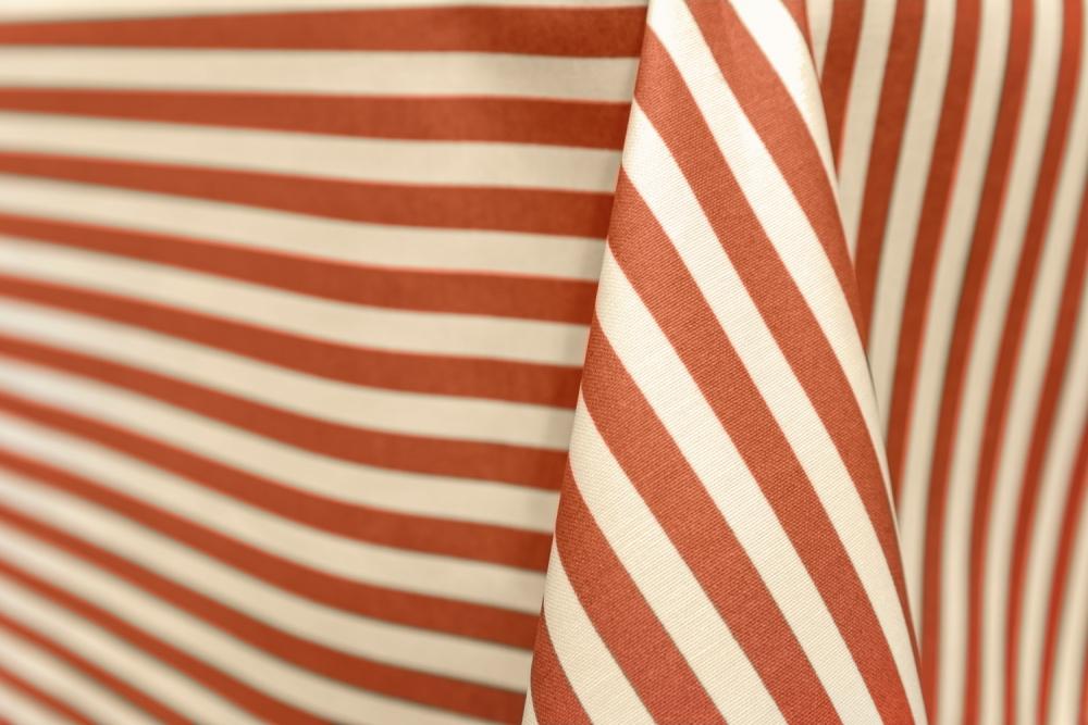 ##Outdoor tablecloth Valiano - stain-resistant and lightfast The Valiano tablecloth is the perfect choice for your outdoor area. Made from 52% polyester and 48% cotton, this table linen offers a robust quality. The striped design gives your table a fresh touch. Thanks to the acrylic surface coating, the table linen is particularly hard-wearing, stain-resistant and can be wiped clean with a damp cloth - perfect for use in sheltered outdoor areas and indoors. The high lightfastness ensures that the vibrant colours remain radiant even when exposed to sunlight. Functionality meets stylish design! * Blended fabric made from 52% polyester, 48% cotton * Weight approx. 190 g/m² * Can be customised to size * Wipeable acrylic surface coating * Stain-resistant and can be wiped off with a damp cloth * High lightfastness, colourfast even in UV radiation * For indoor and protected outdoor use Care tip: Iron on the reverse after each wash to activate the coating and ensure durability - not suitable for mangles.