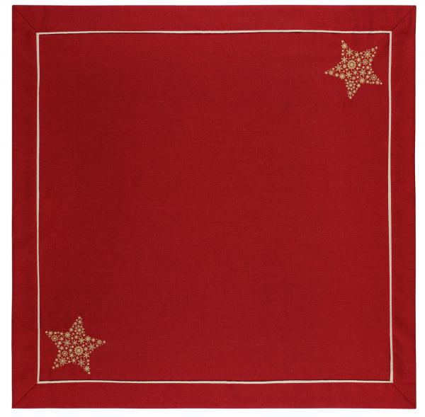 Jednostavna njega, izdržljivi stolnjak sa izvezenom zvijezdom na dva suprotna ugla. 100% poliester, 60°C pranje.