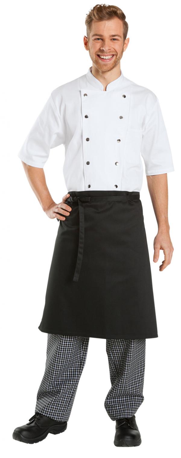 Bijela muška kuvarska jakna koja se lako održava sa kopčom, džepom na grudima i udobnim prorezom na leđima. Pogodno za sušenje u mašini. Sanforisano, bez skupljanja.