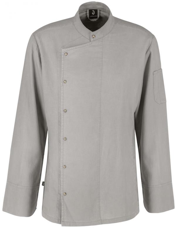 Lagana muška kuvarska jakna dugih rukava od čvrste i prozračne pamučno-lanene tkanine. Sa stajaćom kragnom, dvodijelnim džepom na nadlaktici sa lijeve strane i omčom na vratu. Zatvara se visokokvalitetnim dugmadima. Kada se prethodno opere, dobija svoj prepoznatljiv, blago naborani izgled platna. Pravi rez.