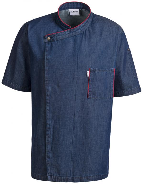 Kuvarska jakna od teksasa koja se lako održava sa 5 kopči, džepom na grudima i džepom za olovku na nadlaktici. Sa šarenim cijevima na kragni i džepu na grudima i otvorima za ventilaciju ispod pazuha. Dostupan u verzijama kratkih i dugih rukava. Pogodno za sušenje u mašini.