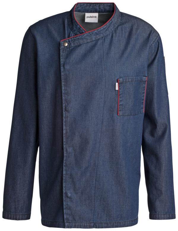 Kuvarska jakna od teksasa koja se lako održava sa 5 kopči, džepom na grudima i džepom za olovku na nadlaktici. Sa šarenim cijevima na kragni i džepu na grudima i otvorima za ventilaciju ispod pazuha. Dostupan u verzijama kratkih i dugih rukava. Pogodno za sušenje u mašini.