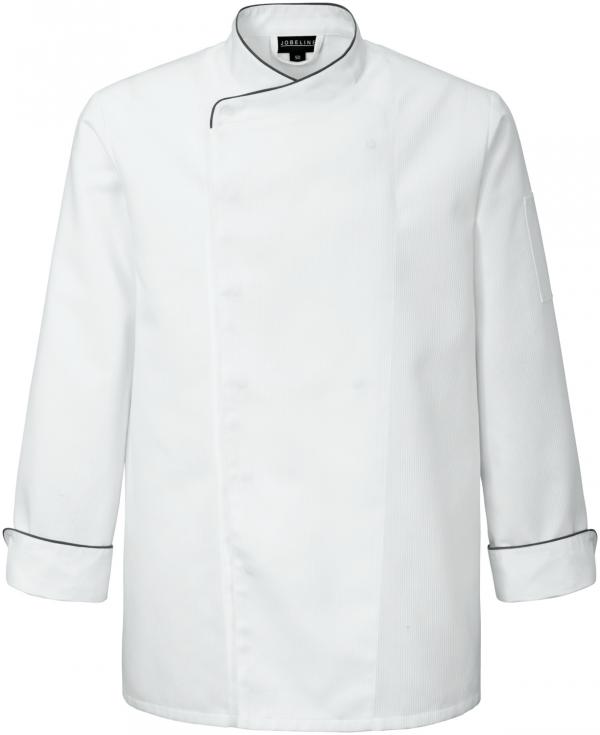 Kuvarska jakna za muškarce, od tkanine sa srebrnim cijevima. Sa dodatnim džepom za termometar na lijevoj nadlaktici. Dostupan u mnogim veličinama. Lako se održava.