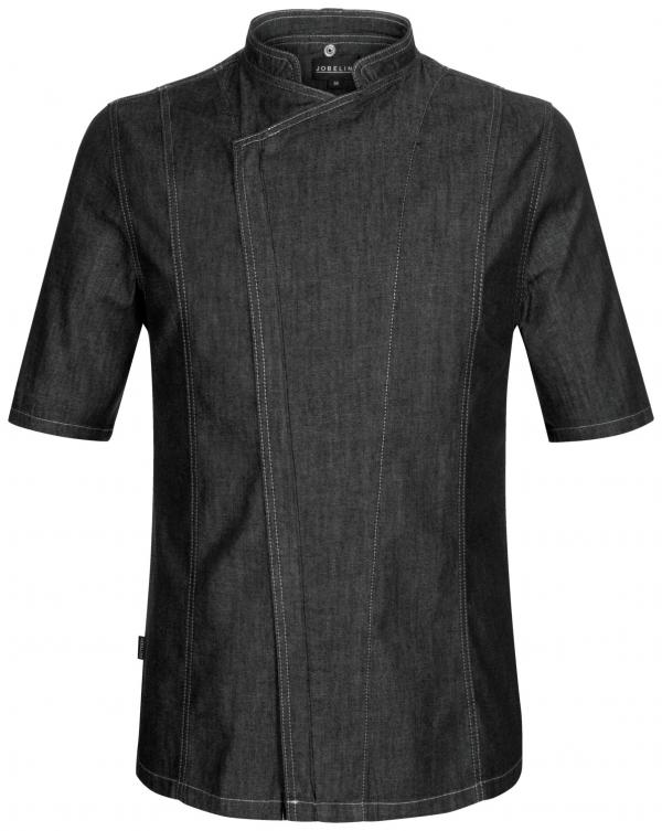 Muška kuvarska jakna od svijetle teksas tkanine. Sa rajsferšlusom, kratkim rukavima, okovratnikom, dvodijelnim džepom na nadlaktici i omčom za kecelju na vratu. 100% Pamuk. 212 g/m². Pranje na 40°C. Dužina leđa: 78 cm za veličinu 50.
