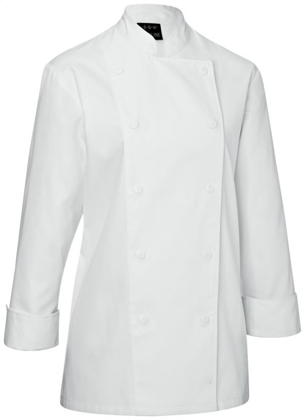 Ženska kuvarska jakna sa dugim rukavima. Ravan  kroj sa dva reda dugmadi. Zatvaranje pomoću dugmadi. Napravljena od glatke miješane tkanine. Veoma udobne. Dostupne u raznim bojama i veličinama.