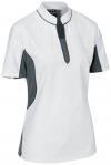 Lagana ženska majica kratkih rukava od čvrstog i prozračnog pamučnog platna. Sa stojećom kragnom, tri džepa sa zakrpama sa dugmadima i omčom na vratu. Duboka dugmad na prednjoj strani sa visokokvalitetnim kopčama olakšava oblačenje preko glave. Pravi rez.
