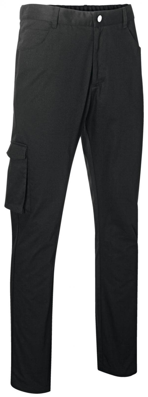 65% poliestera, 35% pamuk. 240 g / m². Pranje na 60°C.Klasične, udobne muške kuvarske pantalone napravljene od materijala koji se prilagođava koži.Unutrašnja dužina noge: 80 cm za veličinu 50.