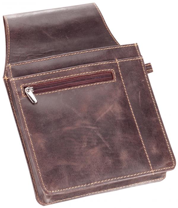 Napravljena od smeđe kože. Lako pričvršćivanje na bilo koji kaiš. Sa prorezom, pregradom sa patent zatvaračem i pregradom za olovke.