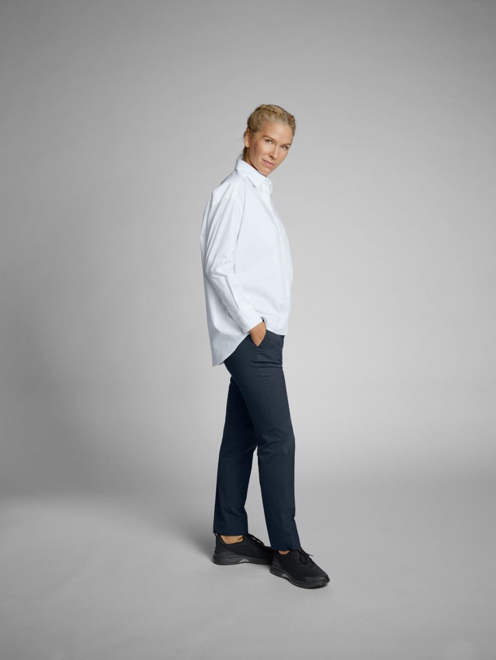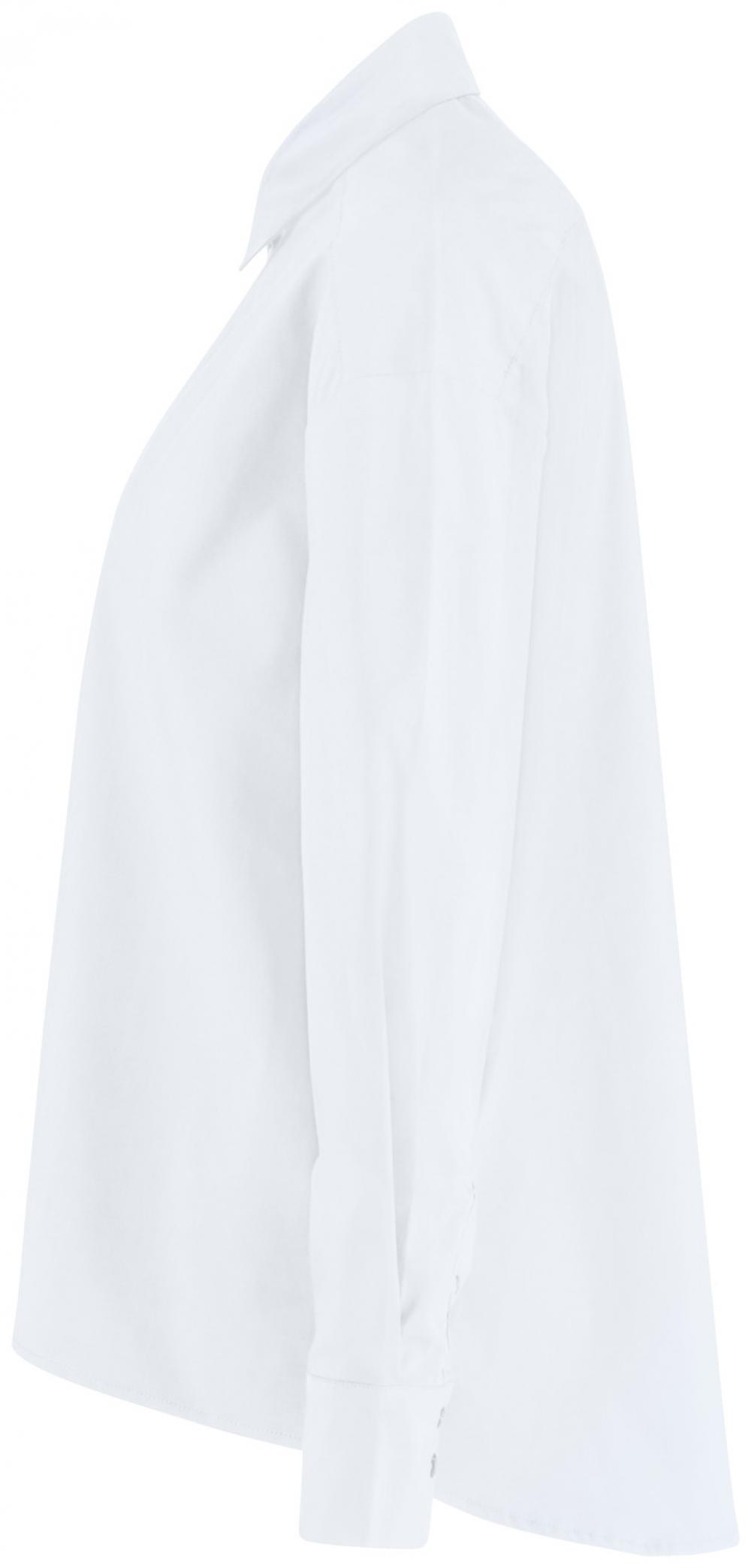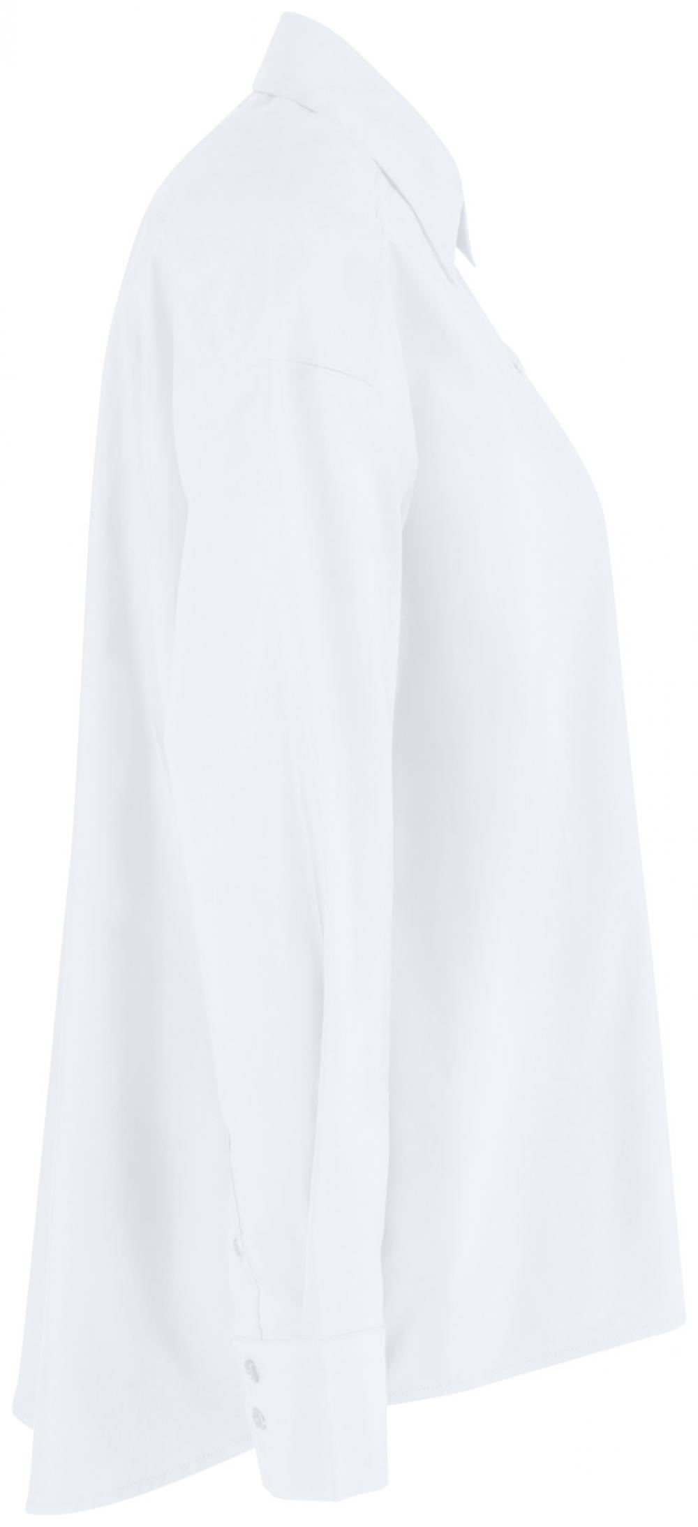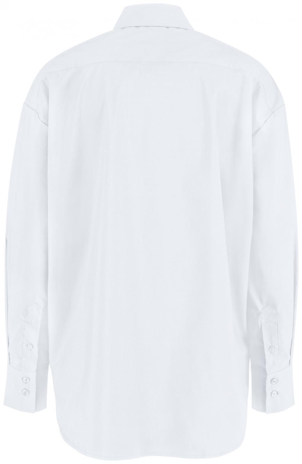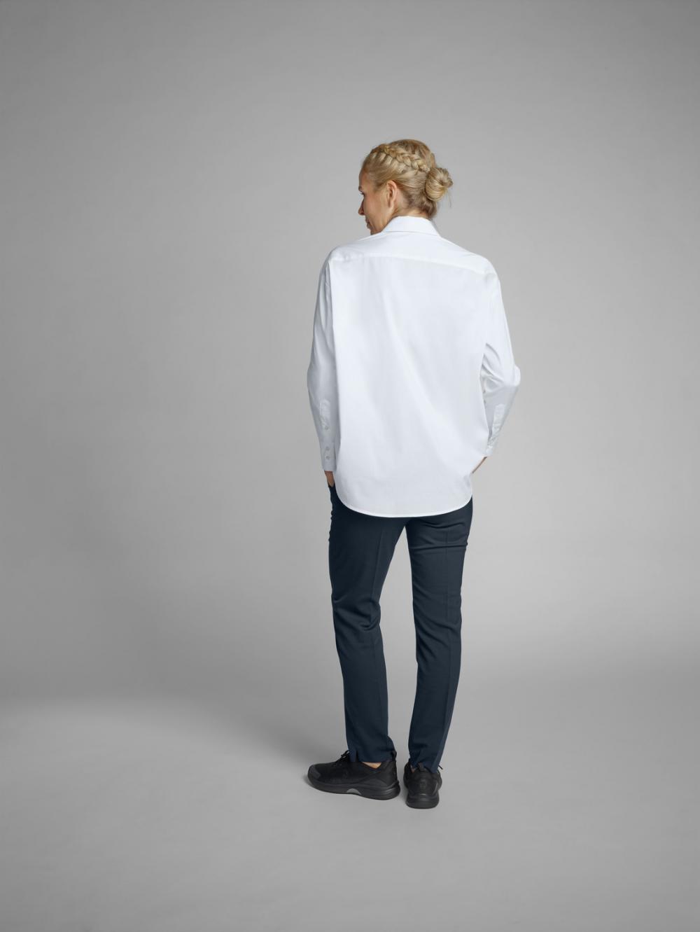 ##Trendy oversize ladies` blouse for the catering and hotel industry This modern, wide-cut women`s blouse made of 67% cotton and 33% polyester is ideal for use in the catering and hotel industry. The long-sleeved cut with a visible button placket, classic shirt collar and sleeve cuffs ensures a smart, professional look. The rounded hem, which is longer from the front to the back, gives the blouse a casual, elegant touch. With no waist seams and a comfortable A-line cut, it is very comfortable to wear and offers freedom of movement. The blouse is washable at 30°C and is perfect for uniformed teams who value modern design and comfort. * 67% cotton, 33% polyester * Long sleeves with visible button placket * Classic shirt collar and cuffs * Rounded hem, longer from front to back * Without waist seams, in a comfortable A-line shape * Comfort fit for high wearing comfort * Easy-care at 30°C wash * Back length approx. 77 cm in size 36
