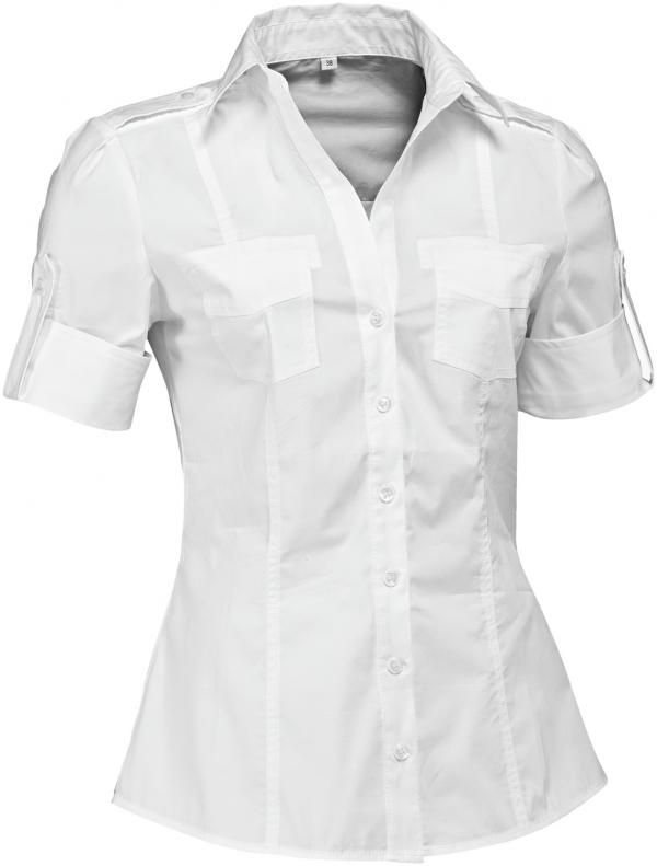 Sportska ženska košulja kratkih rukava sa preklopom na dugmad i V-izrezom, klasičnom kragnom i širokom podignutom manžetnom sa šipkom i dugmetom. Sa ekstra dugačkom dužinom leđa i zaobljenim porubom. Strukirani kroj.