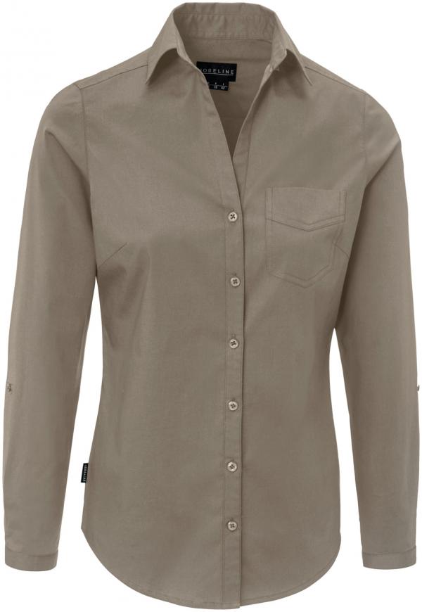 Blago strukirana ženska košulja sa dugim valjanim rukavima i prsnim džepom. Moderan rez, dostupan u mnogim bojama. 65% pamuk, 35% poliester. Pranje na 40 °C. Dužina leđa: 66 cm veličine 36,