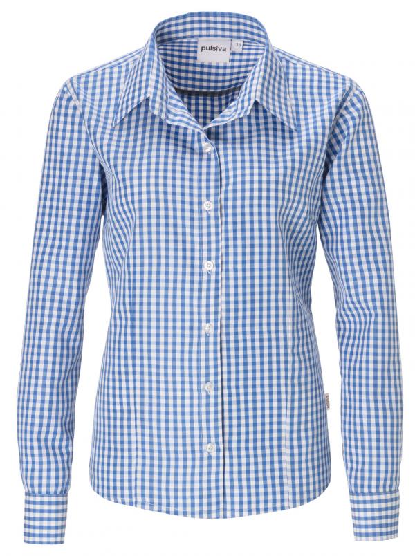 Karirana ženska bluza. Ekstra duga dužina leđa. Moguće sušenje u mašini za sušenje. Dostupna u tri četvrt ili dugim rukavima. Blago strukirana.
