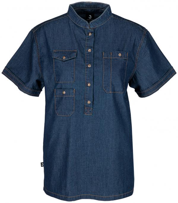 Lagana ženska košulja kratkih rukava od pravog teksasa. Kada se prethodno opere, dobija svoj prepoznatljiv izgled teksasa. Sa stojećom kragnom, tri džepa sa zakrpama sa dugmadima i omčom na vratu. Duboka dugmad na prednjoj strani sa visokokvalitetnim kopčama olakšava oblačenje preko glave.