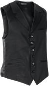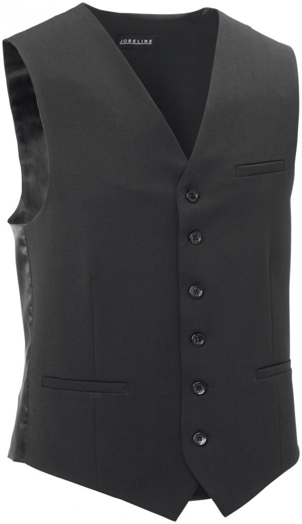 Crni, plemeniti prsluk za muškarce sa dijelom od spandeksa i leđima od poliestera. Sa podesivom zadnjom šipkom i tri džepa. 53% poliester, 43% vuna, 4% spandeks. Pranje na 30 °C..Dužina leđa za muškarce: 60 cm kod veličine 50.