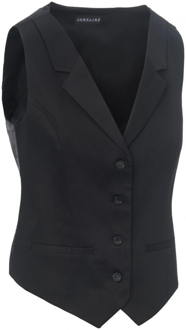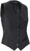 Moderan, kvalitetan ženski prsluk od satena streč. Zatvaranje sa 4 dugmeta, integrisani spoljni džepovi sa cevima, traka pozadi, potpuno podstavljena, strukirana sa kragnom na rever. Materijal: 97% pamuk, 3% spandeks. Pranje na 30°C.